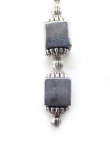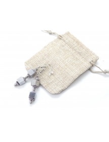 Estos pendientes presentan cuentas cuadradas de auténtica hematita color cromo, enmarcadas por delicadas copas de latón plateado. Los postes y ganchos son de acero inoxidable, lo que garantiza comodidad y durabilidad. Su longitud total es de 60 mm, creando una silueta elegante y moderna que realza el profundo brillo metálico de la hematita. Cada par está elaborado artesanalmente en Francia, en nuestro taller de Anjou, con una meticulosa atención al detalle. Estos pendientes combinan el brillo del metal plateado con la discreta elegancia de la piedra, para un estilo refinado y atemporal, ideal tanto para ocasiones formales como para el día a día.