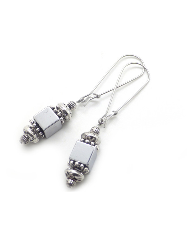 Estos pendientes de hematita cromados se distinguen por sus preciosas copas caladas de latón plateado y sus aros alargados de acero inoxidable. Su diseño realza el brillo metálico de la hematita, ofreciendo una elegancia refinada y atemporal. Con una longitud total de 60 mm, estilizan el cuello y complementan tanto estilos clásicos como contemporáneos. Cada pieza está elaborada artesanalmente en nuestro taller de Anjou, lo que garantiza un acabado impecable y una calidad excepcional. Estos pendientes miden 60 mm de largo, con una sección de cuentas de 25 mm. Están elaborados con cuentas cuadradas de hematita natural, una piedra de origen brasileño apreciada por su tono gris metálico y su sutil brillo. Las grandes copas caladas de latón plateado aportan textura y carácter a la pieza. Los cierres son aros alargados de acero inoxidable, resistentes, cómodos e hipoalergénicos. Hechos a mano en Francia, en nuestro taller de Anjou.