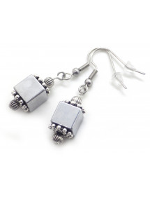 Pendientes cortos de hematita natural y latón plateado – 40 mm