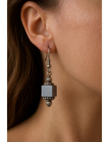 Estos pendientes cortos de hematita natural cautivan por su discreta elegancia y su singular brillo metálico. La piedra de talla cúbica refleja la luz con delicadeza, mientras que las copas de latón plateado aportan un toque de autenticidad artesanal. Se montan sobre ganchos hipoalergénicos de acero inoxidable para una comodidad óptima. Con 40 mm de longitud, estos pendientes complementan cualquier atuendo, desde el día a día hasta las veladas más elegantes. Elaborados a mano en nuestro taller de Anjou, son garantía de calidad y artesanía francesa. Estos pendientes miden 40 mm de largo, con una sección de cuentas de 20 mm. Presentan cuentas cuadradas de hematita natural de Brasil, una piedra semipreciosa conocida por su brillo metálico y sus propiedades estabilizadoras y equilibrantes. Los elementos decorativos son de latón plateado y los ganchos hipoalergénicos de acero inoxidable garantizan una sujeción segura y duradera. Cada pieza de joyería está elaborada artesanalmente en nuestro taller de Anjou, Francia.