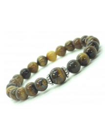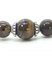 Magnífica creación artesanal presentada por ThurColas Création, se trata de una pulsera para mujer realizada con perlas de ojo de tigre (piedra semipreciosa) de color marrón natural decorada con copas de metal plateado. Todo está montado sobre un hilo elástico de calidad. Estilo: Clásico, chic, Étnico, Bohemio Longitud: 19 cm Cuentas: 10 mm Materiales: marrón Ojo de tigre (piedra semipreciosa), metal plateado Color: marrón Color del metal: Plata, acero