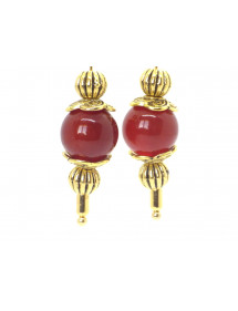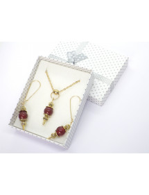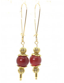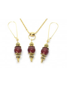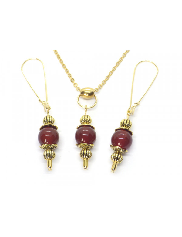 Precioso juego de gargantilla y pendientes vintage de acero inoxidable chapado en oro. Hecho a mano, este conjunto de joyas está hecho con cuidado y está hecho de cornalina roja (piedra semipreciosa), metal dorado y acero inoxidable chapado en oro. Todo va montado sobre una cadena de acero inoxidable bañada en oro para el collar y sobre aros de acero inoxidable bañado en oro para los pendientes. Estilo: Bohemia, Vintage Cierre: mosquetón, pinza de langosta Longitud del collar: 45 cm Altura de los pendientes: 70 mm Cuentas: cornalina roja (piedra semipreciosa) Materiales: metal dorado y acero inoxidable con baño de oro Color: rojo Color del metal : oro, oro