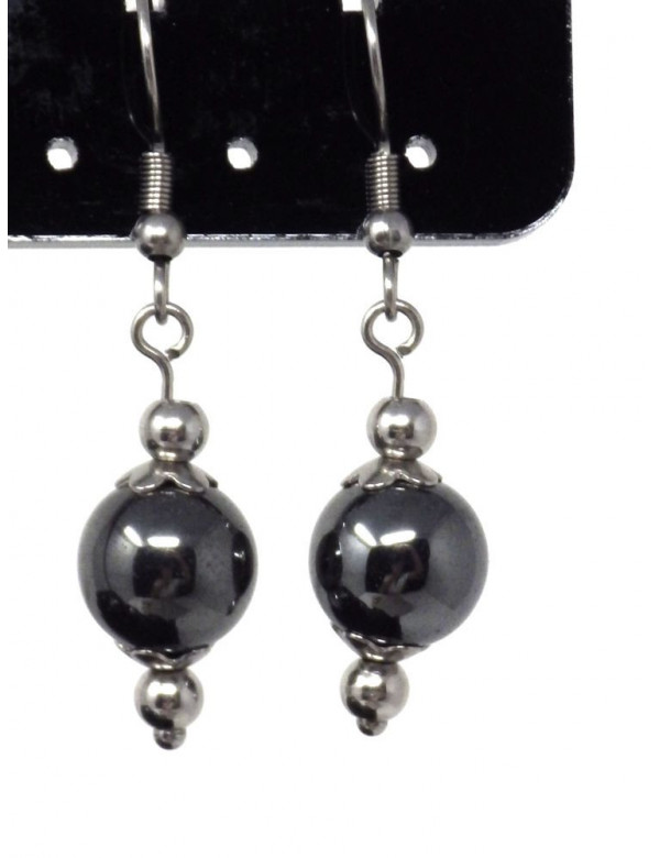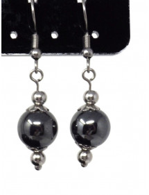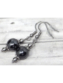 Pendientes de mujer en acero inoxidable y perlas de hematita negra.