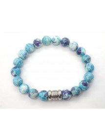 Pulsera étnica para hombre en cuentas de jade azul y morado y cuenta central de acero