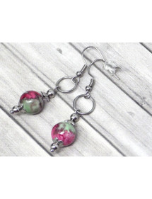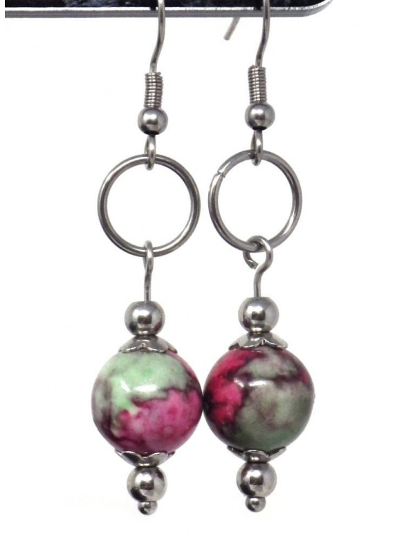 Pendientes de acero inoxidable para mujer con anillos y perlas de jade teñidas de rojo y verde