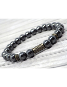 Magnífica pulsera modelo Zen. Hecho con cuidado en nuestros talleres en Francia, este brazalete de la gama Zen está compuesto por magníficas perlas pulidas de Hematite (piedra semipreciosa) y muy bonitas perlas de bronce tibetano. Es la serenidad del budismo lo que brilla en este modelo Zen. Estilo: étnico, bohemio Longitud: 190 mm Cuentas: 8 mm Materiales: Hematita pulida (piedra semipreciosa), bronce, latón Color: Negro Color del metal: bronce Magnífica pulsera compuesta de cuentas de hematita y cuentas de bronce tibetano, todas montadas en un hilo de cristal. Esta joya viene con una bolsa de regalo de color dorado gratis.