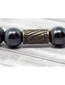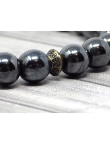 Magnífica pulsera modelo Zen. Hecho con cuidado en nuestros talleres en Francia, este brazalete de la gama Zen está compuesto por magníficas perlas pulidas de Hematite (piedra semipreciosa) y muy bonitas perlas de bronce tibetano. Es la serenidad del budismo lo que brilla en este modelo Zen. Estilo: étnico, bohemio Longitud: 190 mm Cuentas: 8 mm Materiales: Hematita pulida (piedra semipreciosa), bronce, latón Color: Negro Color del metal: bronce