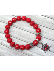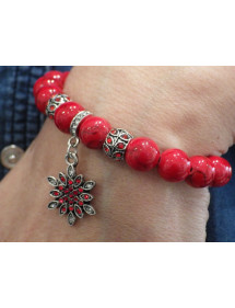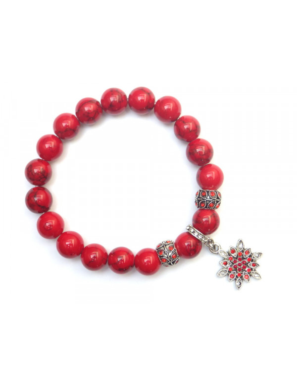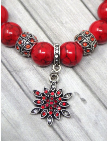 Pulsera de mujer hecha de cuentas turquesas rojas reconstituidas y dijes en forma de estrella con cristales