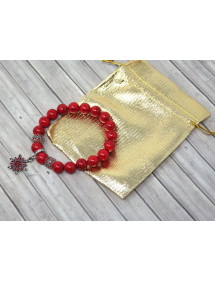 Magnífica pulsera Thurcolas hecha con mimo en nuestros talleres en Francia. Esta pulsera está hecha de cuentas turquesas rojas reconstituidas y magníficas cuentas tibetanas con cristales. El conjunto está adornado con un magnífico colgante Charms en forma de estrella y engastado con cristales. Estilo: étnico, tribal, bohemio, hippie chic, chic, clásico Longitud: 190 mm Cuentas: 10 mm Materiales: turquesa reconstituida, resina, latón plateado, cristal Color: rojo Color metal: Plata Nuestras cuentas son de latón reconstituido rojo turquesa y plateado, están ensambladas sobre un alambre de cristal elástico. Esta joya viene con una bolsa de regalo.