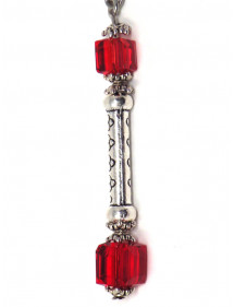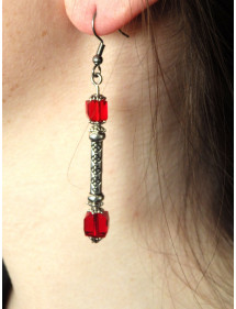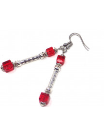 Colgantes pendientes de columna en cristal rojo y acero inoxidable