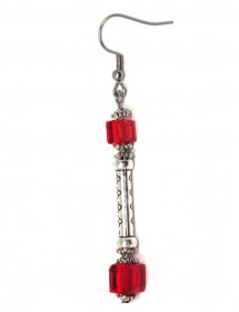 Hermosos aretes rojos colgantes estilo chic para mujer elegante. Esta preciosa joya está hecha con cuentas cuadradas rojas, los ganchos están hechos de acero inoxidable, la barra, las columnas y las copas son de latón plateado. El color dominante de los pendientes es el rojo. Las cuentas de vidrio son de 8 mm y 6 mm, la altura de los pendientes es de 65 mm.