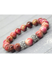Muy hermosa pulsera firmada Thrucolas, realizado con cuidado en nuestros talleres en Francia. Esta pulsera está hecha de cuentas de jade natural (piedra semipreciosa) con dos hermosas perlas tibetanas engastadas con cristales. Estilo: étnico, tribal, bohemio, hippie chic, chic, clásico Longitud: 190 mm Cuentas: 10 mm Materiales: jade natural (piedra semipreciosa), cristal Color: rojo, verde Color del metal: plata antigua Esta joya está hecha con cuentas de jade genuinas, piedras preciosas con propiedades protectoras y cuentas de metal plateado tibetano con cristales. El conjunto está montado sobre un cable de cristal elástico. Esta joya viene con una hermosa bolsa de regalo en textil dorado.