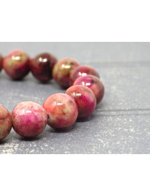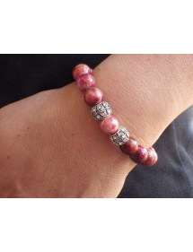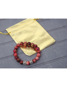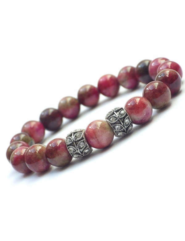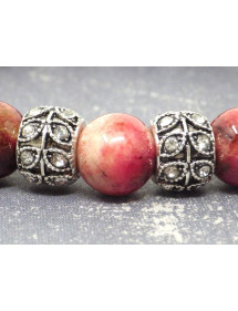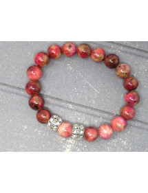 Pulsera para mujer en cuentas de jade rojo y verde natural y perlas centrales con cristales
