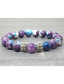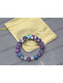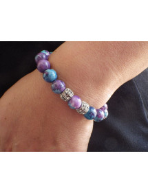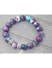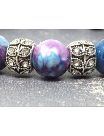 Pulsera para mujer en cuentas de jade reconstituido morado y azul y perlas centrales con cristales