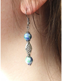 Hermosos pendientes tribales de acero inoxidable. Cuidadosamente hechos en nuestros talleres en Francia, estos aretes de la gama Zen están hechos de hermosas perlas de jade reconstituidas en azul y verde y muy bonitas perlas de metal chapado en plata tibetana. Es la serenidad del budismo lo que se muestra en este modelo zen. Estilo: étnico, Bohemia Altura: 55 mm Perlas: 8 y 10 mm Materiales: jade reconstituido, metal plateado Color: azul, verde Color metal: Plata antigua Esta joya está hecha con perlas de jade reconstituidas, el proceso de teñido es aleatorio, puede haber ligeras diferencias con la fotografía. El conjunto está adornado con cuentas tibetanas en metal plateado. El conjunto está montado sobre un clavo de metal plateado. Esta joya viene con una excelente bolsa de regalo textil.