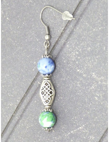 Hermosos pendientes tribales de acero inoxidable. Cuidadosamente hechos en nuestros talleres en Francia, estos aretes de la gama Zen están hechos de hermosas perlas de jade reconstituidas en azul y verde y muy bonitas perlas de metal chapado en plata tibetana. Es la serenidad del budismo lo que se muestra en este modelo zen. Estilo: étnico, Bohemia Altura: 55 mm Perlas: 8 y 10 mm Materiales: jade reconstituido, metal plateado Color: azul, verde Color metal: Plata antigua