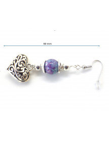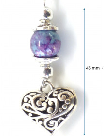 Hechos con pasión en nuestros talleres en Francia, estos magníficos pendientes ThurColas están compuestos de magníficas cuentas de 10 mm en jade reconstituido teñido de morado y azul, adornadas con un colgante de filigrana plateado en forma de corazón. El conjunto está montado sobre un clavo de latón plateado y un gancho francés. - Estilo: bohemio, étnico, clásico y elegante - Gancho: francés - Altura: 60 mm - Perlas: 10 mm - Materiales: jade blanco teñido reconstituido, acero inoxidable, latón plateado - Color: morado, azul - Color del metal: plata antigua
