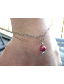 Tobillera de acero inoxidable para mujer con colgante de perlas de jade teñido en rojo y verde.