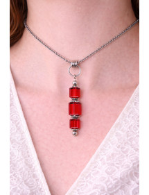Hermoso collar de acero inoxidable rojo de estilo clásico para mujeres elegantes. Esta preciosa joya está hecha con cuentas cuadradas de vidrio rojo. La cadena, el cierre y todas las partes metálicas están hechas de acero inoxidable con la excepción del clavo y las copas colgantes que están hechas de latón plateado. El color dominante del colgante es el rojo. Las cuentas de vidrio son de 6 y 8 mm. La longitud del collar es de 46 cm. Thurcolas es un taller de creación francés especializado en la fabricación artesanal de joyas. Todas nuestras joyas, pulseras, aretes, collares y cadena de tobillo están hechos a mano en Francia con materiales de calidad. Este collar está hecho con materiales de calidad, el cierre de langosta, la cadena y todas las partes metálicas son de acero inoxidable, solo las copas y las varillas son de latón plateado._x000D_ Los materiales utilizados son:_x000D_ Vidrio: es un vidrio de calidad, muy brillante con reflejos cristalinos._x000D_ Acero inoxidable: es una aleación de acero de gran solidez que no se deteriora y no se oxida._x000D_ Latón plateado_x000D_ Esta joyería viene con una caja de regalo .