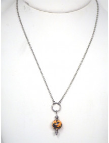Hecho con pasión en nuestros talleres en Francia, este magnífico collar de gargantilla ThurColas está compuesto por un anillo de acero inoxidable y una magnífica cuenta de 10 mm en jade reconstituido teñido en naranja y negro. Todas las partes metálicas de este collar están hechas de acero inoxidable. - Estilo: Bohemio, Étnico, Clásico Chic - Cierre: pinza de langosta - Largo: 43 cm - Cuentas: 10 mm - Materiales: Jade blanco reconstituido teñido, acero inoxidable - Color: naranja, negro - Color metal: Plata antigua, acero Esta joya está hecha con cuentas de jade reconstituidas, el proceso de teñido es aleatorio, puede haber ligeras diferencias con la fotografía. Todo está montado sobre una cadena y un anillo de acero inoxidable. Esta joya viene con una estupenda bolsa de regalo en tejido dorado.