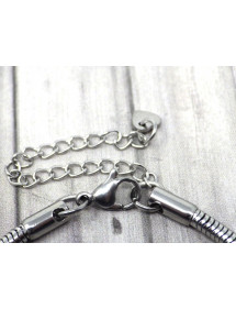 Preciosa pulsera de acero inoxidable. Hecha con pasión esta pulsera Manhattan Charms está compuesta de cuentas de metal plateado con cristales y cuentas de vidrio azul. Las cuentas de esta pulsera son compatibles con pulseras y collares estilo Charms. El conjunto está montado en una cadena de eslabones de serpiente de acero inoxidable y adornado con un magnífico colgante en forma de trébol con cristales. Estilo: Charms Longitud: 190 mm Colgante: 25 mm Cierre: pinza de langosta Cuentas: de 9 a 14 mm con orificio grande compatible con pulseras estilo Charms Materiales: Acero inoxidable, latón, resina, vidrio, cristales Color: Azul, azul marino Color del metal: plata antigua Esta magnífica pulsera consta de abalorios tipo Charms en vidrio incrustado y un colgante con cristales montado en una pulsera flexible de acero inoxidable con malla de serpiente. La plata antigua es una designación para una aleación de metales que no contiene plata. Esta joya viene con una caja de regalo.