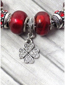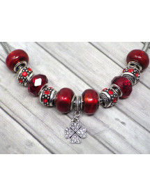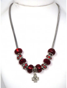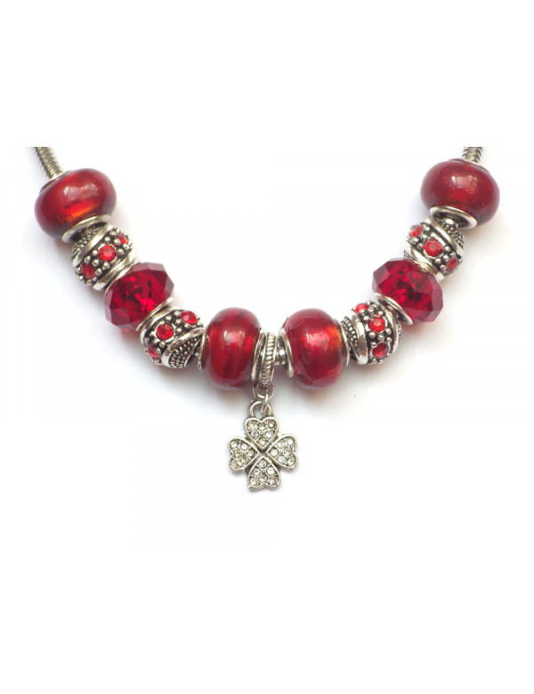 Magnífico collar de acero inoxidable. Hecho con pasión, este collar Manhattan Charms está compuesto por cuentas de metal plateado con cristales y cuentas de vidrio rojas. Las cuentas de este collar son compatibles con pulseras y collares estilo Charms. El conjunto está montado en una cadena de serpiente de acero inoxidable y adornado con un colgante sublime en forma de trébol con cristales. Estilo: Charms Largo: 48 cm Colgante: 25 mm Cierre: pinza de langosta Cuentas: de 9 a 14 mm con gran agujero compatible con pulseras estilo Charms Materiales: Acero inoxidable, latón, resina, vidrio, cristales Color: rojo Color metal : Plata antigua