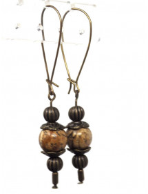 Pendientes Thurcolas de estilo vintage en jaspe marrón montados sobre elegantes aros de bronce antiguo