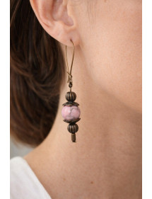 Pendientes Thurcolas de estilo vintage en turquesa rosa reconstituida montados sobre aros de fantasía en bronce antiguo