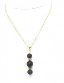 Collar de acero inoxidable dorado de estilo elegante y clásico con colgante de ágata esmerilada negra