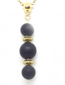 Muy hermoso collar hecho a mano presentado por ThurColas Création. Muy elegante, este collar está hecho de cuentas de ágata negra escarchada (piedra semipreciosa) y cuentas tibetanas en metal dorado. Todo está montado en una cadena de acero inoxidable. Estilo: Chic clásico, Étnico, Bohemio Broche: pinza de langosta Longitud: 55 cm Cuentas: 10 mm, 8 mm Materiales: ágata esmerilada negra (piedra semipreciosa), metal y acero inoxidable dorado Color: negro Color del metal: oro Nuestras cuentas están hechas de ágata esmerilada negra real y ensambladas en una varilla de metal dorado y una cadena de acero inoxidable, siendo el ágata una piedra natural, cada cuenta es única en color por lo que puede haber ligeras diferencias con el modelo presentado, cada modelo es único. Esta joya viene con una bolsa de regalo de color dorado.