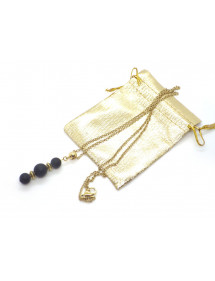 Muy hermoso collar hecho a mano presentado por ThurColas Création. Muy elegante, este collar está hecho de cuentas de ágata negra escarchada (piedra semipreciosa) y cuentas tibetanas en metal dorado. Todo está montado en una cadena de acero inoxidable. Estilo: Chic clásico, Étnico, Bohemio Broche: pinza de langosta Longitud: 55 cm Cuentas: 10 mm, 8 mm Materiales: ágata esmerilada negra (piedra semipreciosa), metal y acero inoxidable dorado Color: negro Color del metal: oro