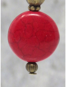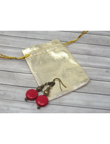 Superbes boucles d'oreilles pendantes Hippie Chic fabriquées artisanalement en France avec des perles rouges en turquoise reconstituée, et avec des perles tibétaines en bronze. L'ensemble est très chic, vous allez les adorer. Le tout est monté sur des crochets French en bronze. Style : Bohême, boho, gypsy, tribal, ethnique, Zen Crochet : French en bronze Hauteur : 50 mm Perles : turquoise reconstituée (16x6 mm), perles tibétaines en bronze Matériaux : Turquoise reconstituée, bronze, laiton Couleur : Rouge Couleur du métal : Bronze Ces magnifiques boucles d'oreille sont constituées de perles plates en turquoise rouge reconstituée et de perles tibétaines en bronze. Le tout est monté sur une tige et des crochets French en bronze. Ce bijou est livré avec une pochette cadeau de couleur dorée.