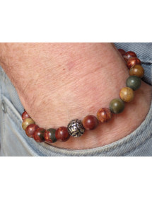Bracelet pour homme de la gamme Africa Dream en jaspe Picasso avec perle centrale en acier inoxydable
