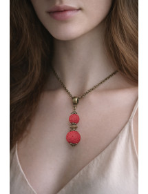 19,25 $Magnifique création artisanale présentée par ThurColas Création, il s'agit d'un collier en laiton couleur bronze antique avec un pendentif constitué de perles naturelles en pierre de lave rouge (pierre semi précieuse) agrémenté de perles tibétaines et coupelles en bronze antique. Son style vintage, sublimé par de magnifique perles, le rend idéal pour une occasion spéciale ou pour apporter une note chic à votre tenue quotidienne. Ce collier ainsi que son fermoir sont en laiton bronze antique, assortis à des perles et tiges en laiton, pour un design harmonieux et intemporel. Parfaitement équilibré avec une chaine de 45 cm et un pendentif de 35 mm. Style : Classique, chic, Ethnique, Bohême Hauteur pendentif : 35 mm Longueur collier : 45 cm Perles : 10 mm et 8 mm Matériaux : pierre de lave rouge (pierre semi précieuse), laiton, bronze antique Couleur : rouge Couleur du métal : Bronze antique -