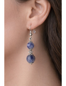 Très belle création artisanale présentée par ThurColas Création, il s'agit de boucles d'oreilles en acier inoxydable constituées de perles naturelles en jaspe bleu (pierre semi précieuse) agrémentées de perles tibétaines et coupelles en laiton argenté. Le tout est monté sur des crochets french en acier inoxydable. Parfaitement équilibrées avec une hauteur totale de 50 mm et un pendentif de 35 mm, ces boucles d’oreilles légères et confortables sont pensées pour être à la fois élégantes et faciles à porter.
