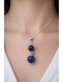 Collier en acier inoxydable pour femme avec pendentif en perles de Lapis Lazuli bleu et laiton argenté