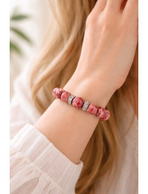 Magnifique création artisanale présentée par ThurColas Création, il s'agit d'un bracelet pour femme constitué de perles naturelles en jaspe impérial rouge (pierre semi précieuse) agrémenté de perles en acier inoxydable serties de cristaux. Le tout est monté sur un fil élastique de qualité. Style : Classique, chic, Ethnique, Bohême Longueur : 19 cm Perles : 10 mm Matériaux : jaspe impérial rouge (pierre semi précieuse), acier inoxydable, cristal Couleur : rouge, blanc Couleur du métal : Argent