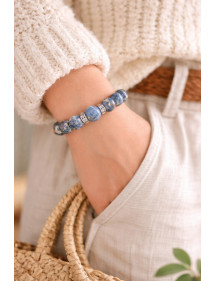 Magnifique création artisanale présentée par ThurColas Création, il s'agit d'un bracelet pour femme constitué de perles naturelles en jaspe impérial bleu (pierre semi précieuse) agrémenté de perles en acier inoxydable serties de cristaux. Le tout est monté sur un fil élastique de qualité. Style : Classique, chic, Ethnique, Bohême Longueur : 19 cm Perles : 10 mm Matériaux : jaspe impérial bleu (pierre semi précieuse), acier inoxydable, cristal Couleur : bleu, blanc Couleur du métal : Argent