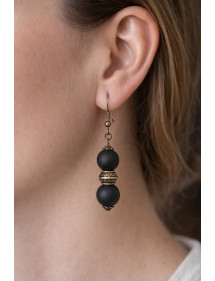 Boucles d'oreilles pour femme en perles d'agate noire et perles tibétaines en bronze antique