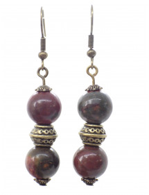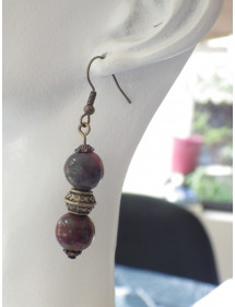 Boucles d'oreilles pour femme en perles de jaspe Picasso et perles tibétaines en bronze antique