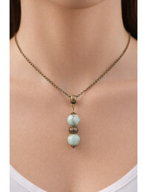 Collier pour femme avec pendentif en perles de turquoise reconstituée teintées en bleu et perles tibétaines en bronze antique
