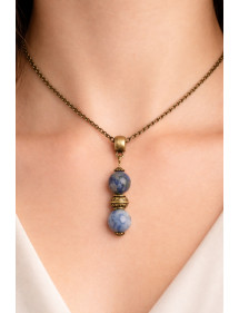 Collier pour femme avec pendentif en perles de jaspe bleu et perles tibétaines en bronze antique