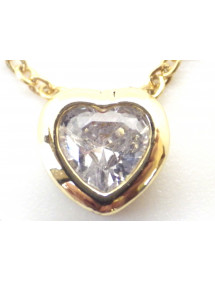 Collier cœur acier inoxydable doré avec zircon - 45 cm + extension