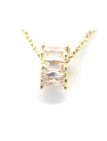 Ce collier contemporain se distingue par un pendentif cylindrique de 11 mm par 6,5 mm, pavé de zircon taille baguette qui reflètent intensément la lumière. Sa chaîne en acier inoxydable plaqué or de 45 cm, complétée par une extension de 5 cm, permet un réglage précis pour s’adapter à toutes les encolures. Réalisé artisanalement dans notre atelier en Anjou, ce bijou conjugue modernité et élégance pour sublimer vos tenues du quotidien comme de soirée.