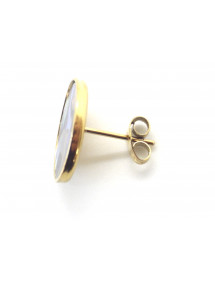 Ces boucles d’oreilles ovales associent la chaleur du plaqué or 18 carats à l’éclat iridescent de la nacre d’ormeau, véritable trésor marin reconnu pour ses reflets chatoyants aux nuances bleues, vertes et violettes. Chaque paire est unique : les variations naturelles de la nacre créent des motifs organiques qui captent la lumière sous tous les angles. Leur design sobre et raffiné met en valeur la beauté authentique du matériau, pour un bijou à la fois élégant et intemporel. Réalisées en acier inoxydable plaqué or 18K, ces boucles d’oreilles garantissent une excellente résistance à l’usure et à l’oxydation, tout en offrant un confort parfait pour les peaux sensibles. Avec leurs 16 mm de hauteur et 11 mm de largeur, elles épousent délicatement le lobe et se portent facilement au quotidien comme pour les occasions spéciales. Chaque bijou est façonné à la main dans notre atelier en Anjou, selon le savoir-faire artisanal français qui allie précision, élégance et amour du détail.