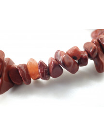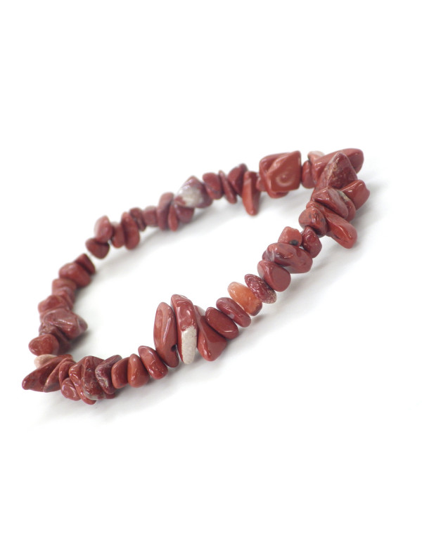 Ce bracelet en véritables éclats de jaspe rouge séduit par la chaleur de sa couleur rouge brique et son éclat naturel. Composé uniquement de pierres naturelles, il ne contient aucune partie métallique, garantissant un port agréable et hypoallergénique. Souple et confortable grâce à son montage élastique, il s’adapte facilement à la majorité des poignets (longueur 19 cm). Réalisé artisanalement à la main dans notre atelier en Anjou, ce bijou met en valeur la beauté brute du jaspe rouge, pierre symbole de force vitale et de stabilité intérieure.