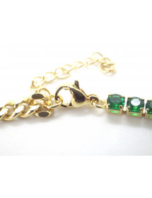 Ce bracelet en acier inoxydable plaqué or 18K se distingue par l’éclat profond de ses zircons verts aux reflets lumineux et raffinés.
