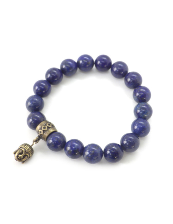 Ce bracelet est composé de véritables perles de lapis-lazuli naturel d’Afghanistan de 10 mm montées à la main sur un cordon élastique durable, avec une tête de Bouddha en laiton finition bronze antique. Sa longueur de 19 cm convient à un poignet femme standard. Chaque pièce est fabriquée artisanalement en France, dans notre atelier en Anjou, avec un soin particulier apporté aux matériaux et aux finitions. Ce bijou au style élégant et intemporel met en valeur la profondeur bleue unique de la pierre naturelle.