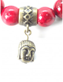 Bracelet en turquoise reconstituée teintée rouge avec tête de Bouddha en laiton bronze – 10 mm – 19 cm