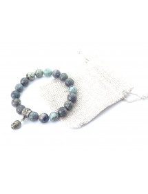 Ce bracelet est composé de véritables perles de turquoise verte naturelle du Tibet de 10 mm montées à la main sur un cordon élastique durable, avec une tête de Bouddha en laiton finition bronze antique. Sa longueur de 19 cm convient à un poignet femme standard. Chaque pièce est fabriquée artisanalement en France, dans notre atelier en Anjou, avec un soin particulier apporté aux matériaux et aux finitions. Ce bijou se distingue par ses nuances vertes profondes et naturelles, typiques des turquoises tibétaines.